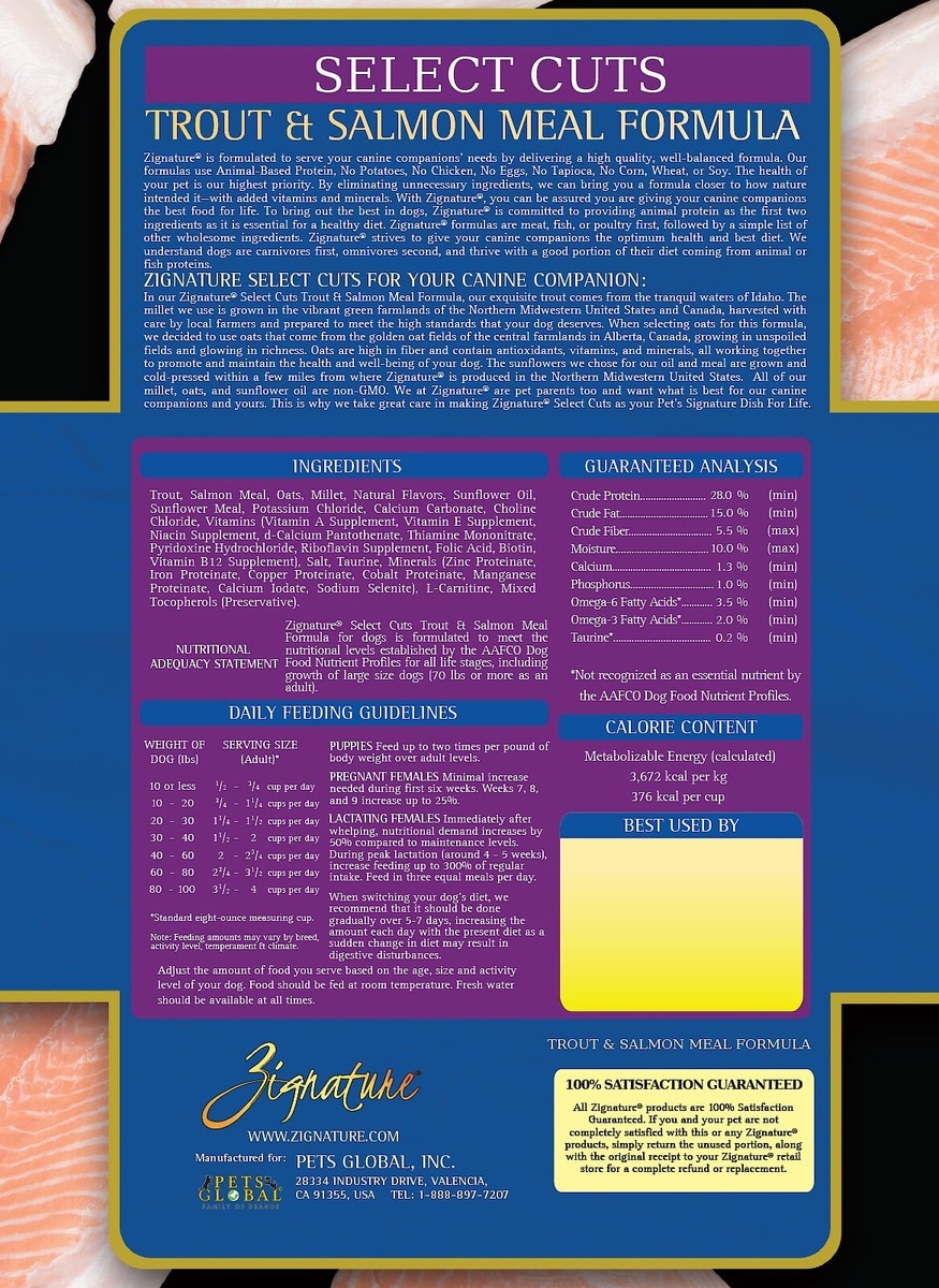 Zignature Select Cuts Trout & Salmon Meal Formula Dry Dog Food, 25-lb bag