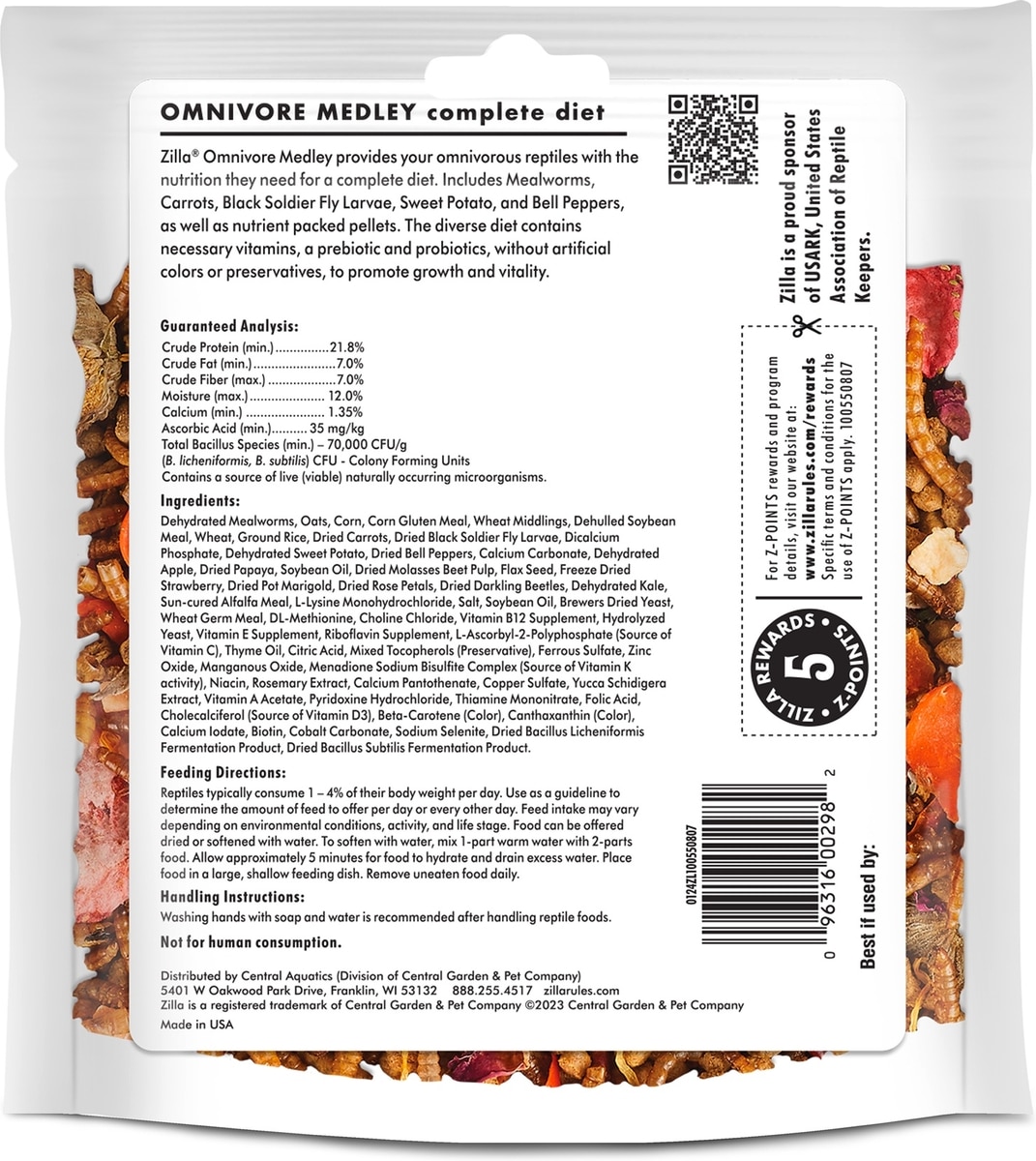 Zilla Omnivore Medley Diet Lizard Food, 4-oz bag