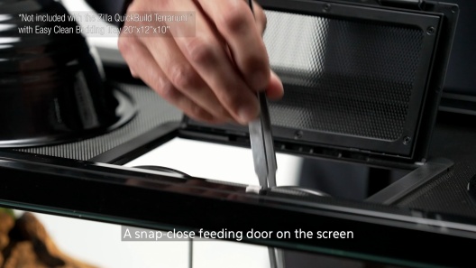 Featuring durable tempered glass, QuickBuild Terrariums let you see into your enclosure from any angle. The habitat’s drop-down, front-opening glass doors lock with thumb screws, and it comes with a cable lock to secure the doors, too.