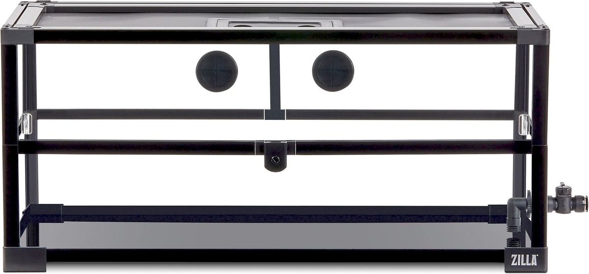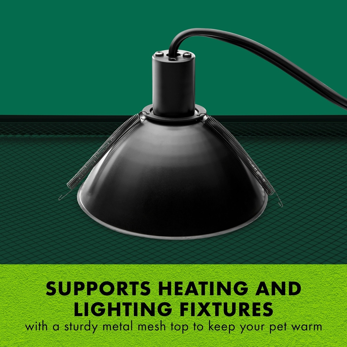 • This terrarium features secure locks on the top screen and feeding port to keep your pet safe.