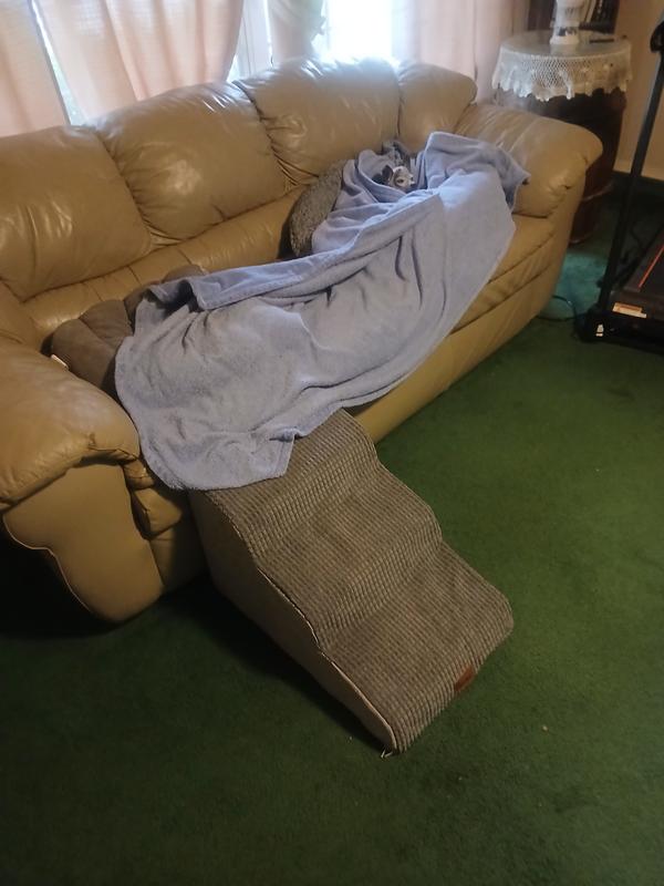 This staircase is exactly what we needed to help our dog get up and down from our low bed. It’s soft but sturdy, and after a couple of months of use so far is holding