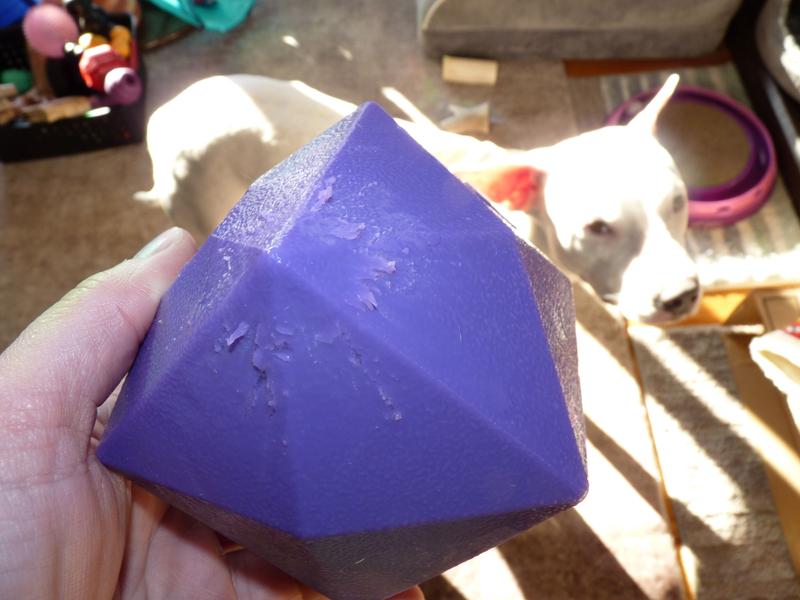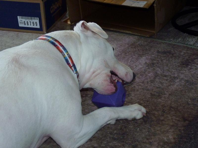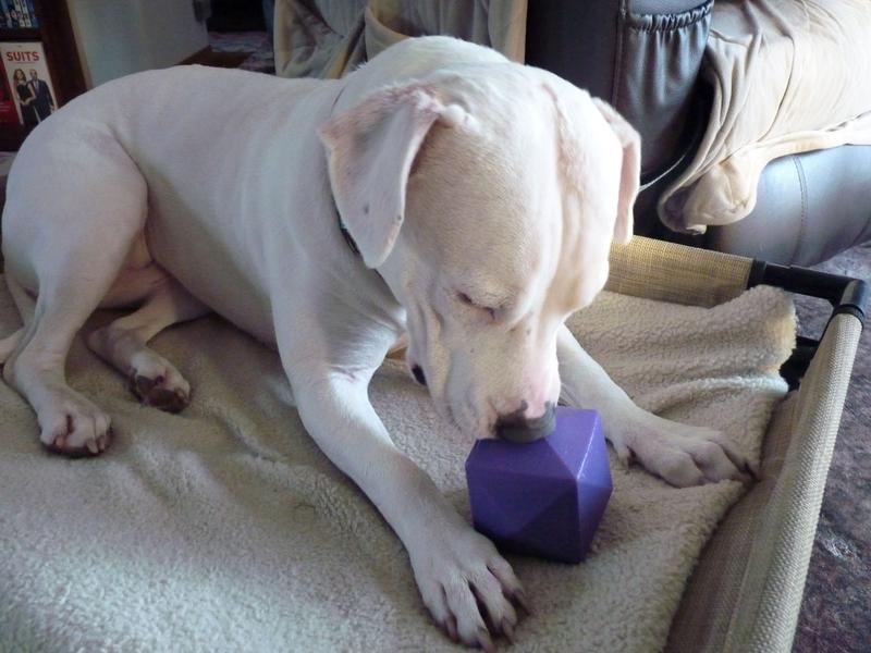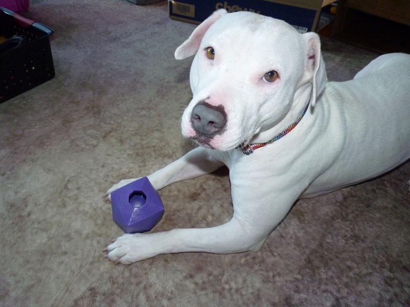 This is an okay ball, but it's not strong enough to stand up to power chewers and is a horrible treat dispenser. The opening is at least an inch wide so unless you want to wedge a single, massive biscuit inside, whatever you put in it just falls right out. The flat sides and angles would make it fun to throw for a dog who plays fetch, but it's not even as durable as classic Chuckit balls. When my crazy-chewing pittie mix settled in to gnaw on it, she had one of the pointed "corners" fracturing within about 10 minutes. (She got distracted and hasn't returned to this one in a while so it's still in her toy box for now.) Not really recommended unless you just want a large ball for a big dog who *doesn't* try to chew up their toys.