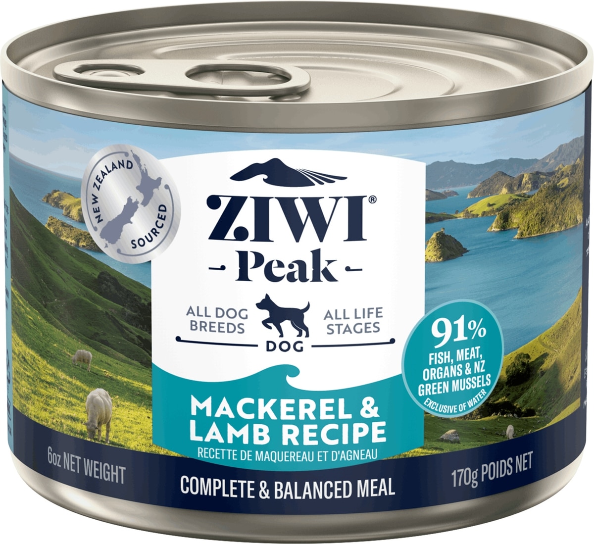 ZIWI Peak Mackerel & Lamb Recipe Canned Dog Food, 6-oz can, case of 12