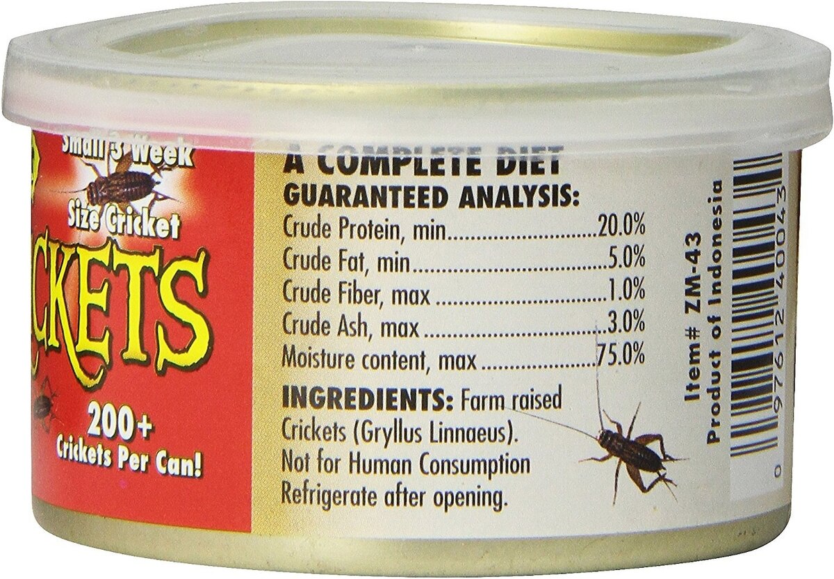 - Zoo Med Can O' Crickets Reptile & Bird Food, 1.2-oz can$5.99 Chewy Price$6.99 List Price$5.69 Autoship PricePromo, New Customers Only: Spend $49+, Get $20 eGift Card