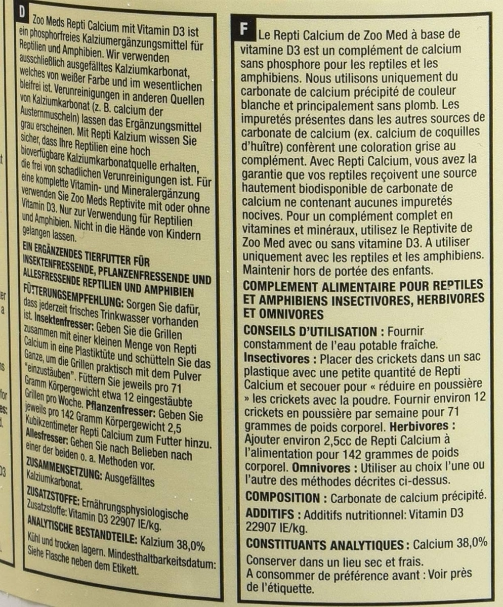 - Zoo Med Repti Calcium without D3 Reptile Supplement, 8-oz jar$7.99 Chewy Price$8.99 List Price$7.59 Autoship PricePromo, New Customers Only: Spend $49+, Get $20 eGift Card