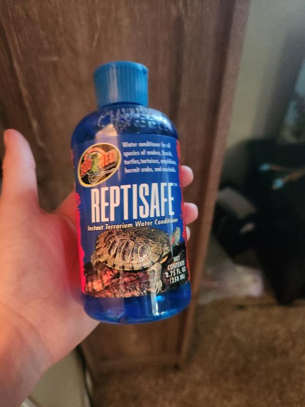 Aquatic Species Habitat Water: Add i teaspoon (5 ml) of improved ReptiSafe per 5 gallons of tap water. Treat all new or replacement water.