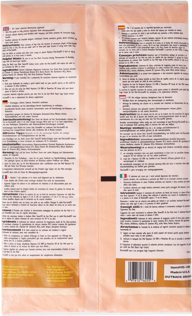 Zoo Med Vita-Sand All Natural Vitamin-Fortified Calcium Carbonate Substrate, Outback Orange, 10-lb