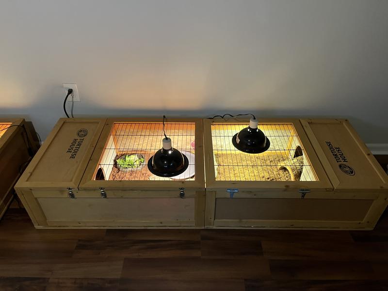 I already had a tortoise house, but bought another one to connect them together. Now my Russian tortoise has more room to run around. I did add cheap sticky tiles to the floor prior to assembling, this helps so the wood will not rot overtime.
