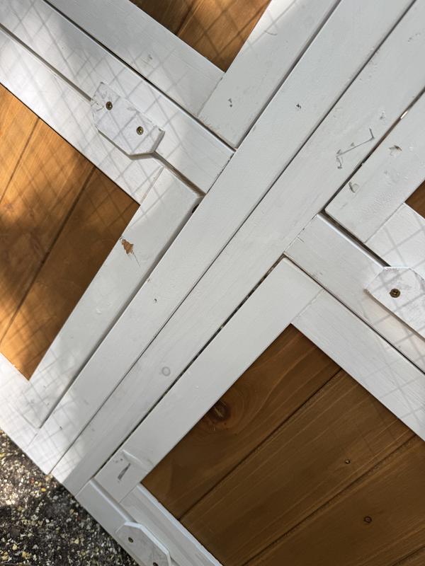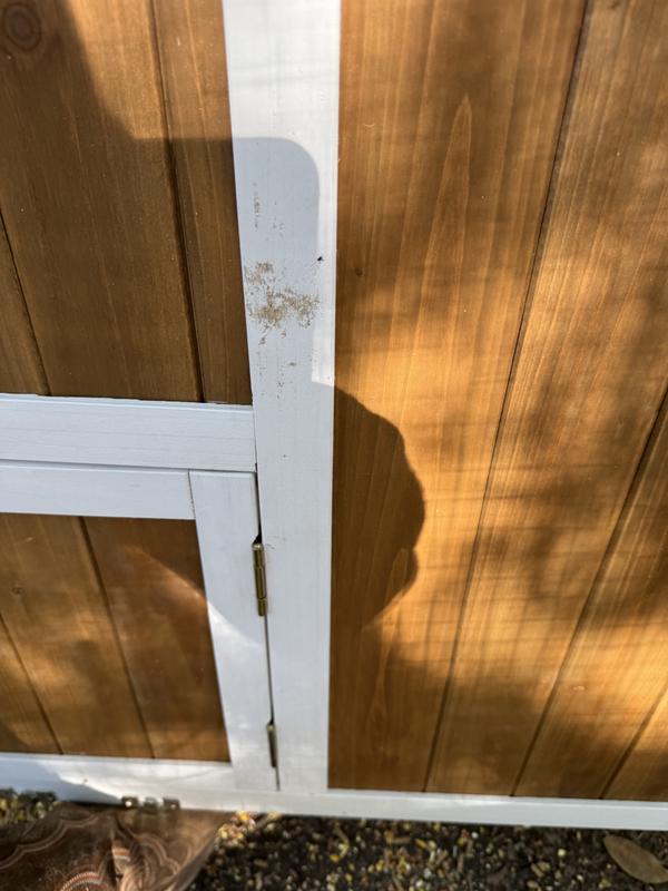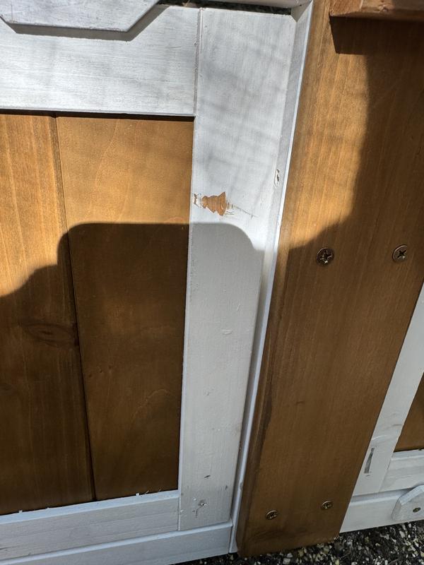 I noticed the damages as I was taking it out of the box and I was disappointed to say the least. I would have sent it back however due to the weight and the fact I needed it immediately. The coop itself is nice and love the ease of rolling it around. I put it together by myself in about 2 hours. Directions could be confusing at times as well.