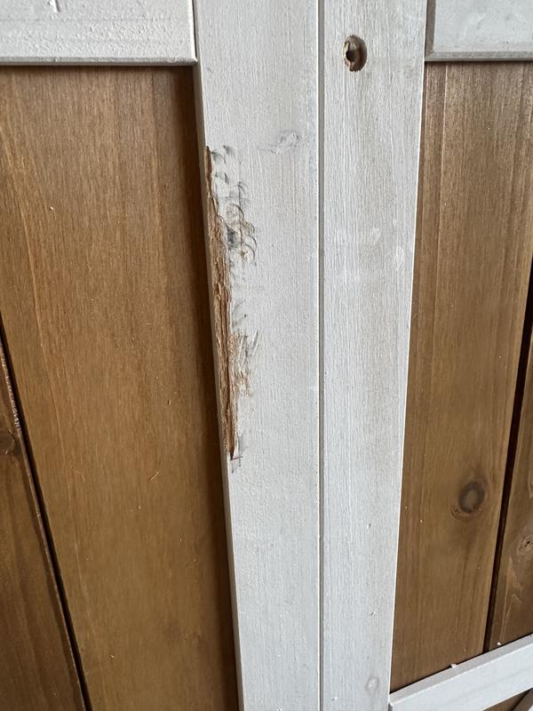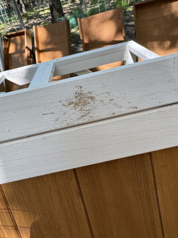 I recieved this in an extremely damaged box that I could not even move as it was falling apart. Multiple areas had cracks and splitting wood. I have no idea how this is expected to hold up being used outside. Chewy customer services was very helpful.