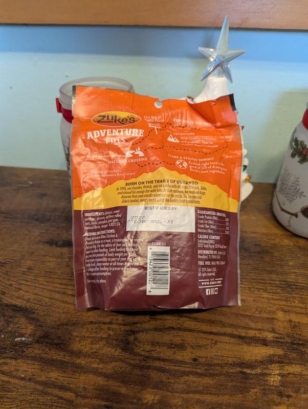 - Zuke's Adventure Bites Peanut Butter & Oats Recipe Soft & Chewy Dog Treats, 6-oz pouch$9.98 Chewy Price$11.99 List Price$9.48 Autoship PricePromo, New Customers Only: Spend $49+, Get $20 eGift Card +1 deal