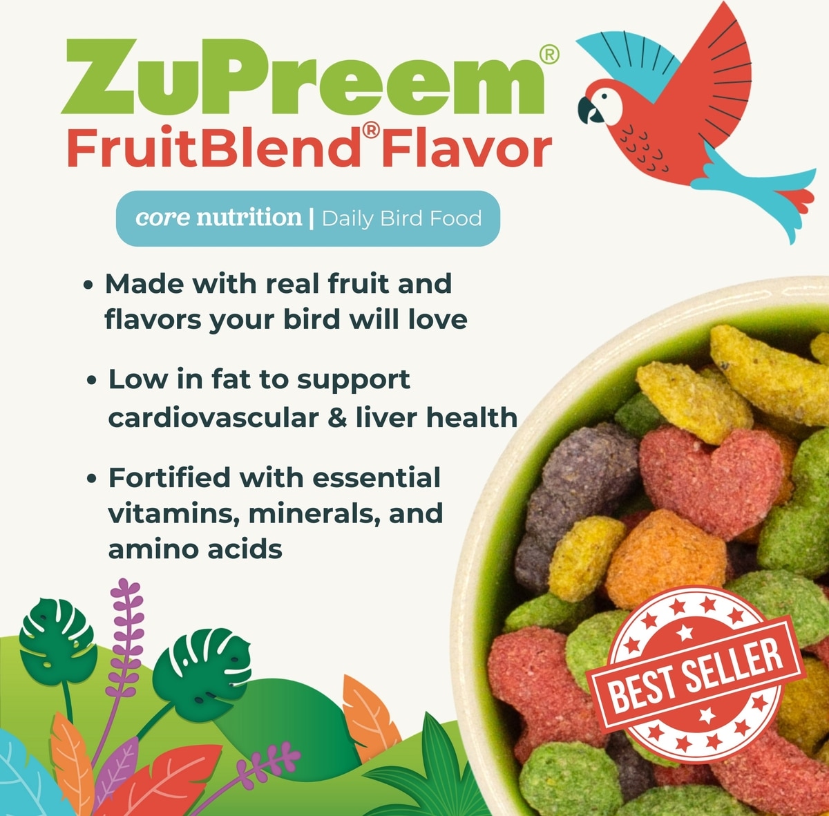 - ZuPreem FruitBlend Flavor with Natural Flavors Daily Medium Bird Food, 2-lb bag$16.64 Chewy Price$18.49 List Price$15.81 Autoship PricePromo, New Customers Only: Spend $49+, Get $20 eGift Card