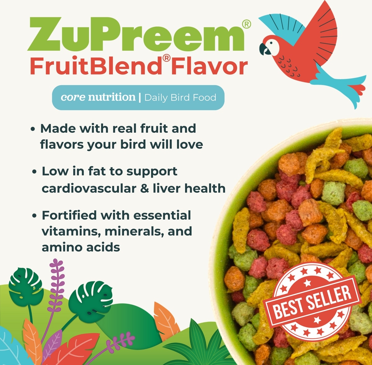 - ZuPreem FruitBlend Flavor with Natural Flavors Daily Parrot & Conure Bird Food, 3.5-lb bag$19.58 Chewy Price$26.99 List Price$18.60 Autoship PricePromo, New Customers Only: Spend $49+, Get $20 eGift Card