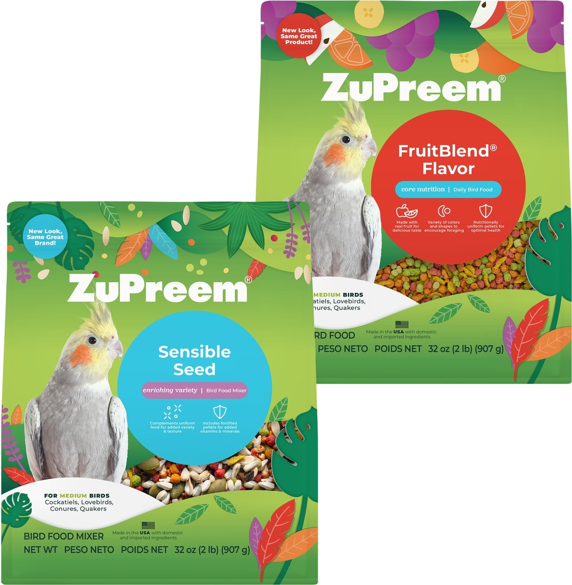ZuPreem Sensible Seed Medium Bird Food, 2-lb bag—Indulge your bird’s delicious instincts the sensible way with ZuPreem Sensible Seed Bird Food for Medium Birds! This premium blend of seeds and pellets adds rich variety to your pal’s regular diet. The yummy recipe features an exciting mix of squash seeds, shelled pumpkin seeds, safflower seeds, ground corn and more. Plus, each bite is sized just right to help prevent selective feeding. This food size is great for cockatiels, lovebirds, quakers, small conures and other medium birds. Add more foraging fun to everyday meals with ZuPreem!