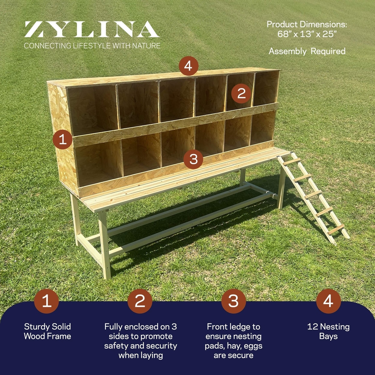 Zylina Best Rest 12 Bay Bird Nesting Box, 68 x 13 x 25-in